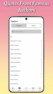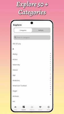 ஒவ்வொரு நாளையும் உத்வேகத்துடன் தொடங்க, எங்களின் 'தினசரி மேற்கோள்கள்' அம்சம் கைகொடுக்கும். நேர்மறை சிந்தனையுடன் உங்கள் நாளை வழிநடத்த புதிய சக்தியை இது அளிக்கும். மேலும், உங்கள் தனிப்பட்ட மற்றும் தொழில்முறை இலக்குகளை நோக்கி முன்னேற, 15,000-க்கும் மேற்பட்ட ஊக்கமளிக்கும் வரிகளுடன் 'உந்துதல்' பகுதி காத்திருக்கிறது. சுய விழிப்புணர்வை வளர்த்து, உங்களின் உண்மையான ஆற்றலை வெளிக்கொணர விரும்புகிறீர்களா? 'சுய கண்டுபிடிப்பு' பகுதியில் உள்ள 15,000+ மேற்கோள்கள், புகழ்பெற்ற சிந்தனையாளர்களின் ஞானத்தை உங்களுக்கு வழங்கி, உங்கள் தனிப்பட்ட வளர்ச்சிப் பயணத்திற்கு ஒளியூட்டும்.