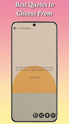 மனதை அமைதிப்படுத்தி, நேர்மறை அதிர்வுகளை உங்கள் வாழ்க்கையில் நிரப்ப, 15,000-க்கும் அதிகமான மேற்கோள்கள் கொண்ட 'நேர்மறை' பிரிவு உங்களுக்கு ஏற்றது. வாழ்க்கையின் அனுபவங்களிலிருந்து கிடைத்த ஞானத்தைப் பகிரும் 10,000+ மேற்கோள்களுடன் 'வாழ்க்கைப் பாடங்கள்' பகுதி, சவால்களை எதிர்கொள்ளும் வழிகளைக் காட்டும். உங்கள் உணர்வுகளையும் அபிலாஷைகளையும் பிரதிபலிக்கும் 'சொற்கள்' தொகுப்பிலும், காலத்தால் அழியாத, தேர்ந்தெடுக்கப்பட்ட 5,000 'சிறந்த' மேற்கோள்களிலும் மூழ்கி மகிழலாம். "11000 மேற்கோள்கள், கூற்றுகள் & நிலை" எந்தவித கட்டணமும் இன்றி, அனைவருக்கும் உத்வேகத்தை அணுகக்கூடியதாக்குகிறது. இது வெறுமனே ஒரு செயலி அல்ல; உங்களின் சிறந்த வாழ்க்கையை வடிவமைக்க உதவும் ஒரு தினசரி சடங்கு.