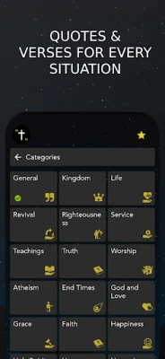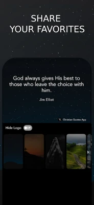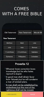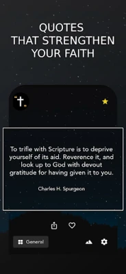 இந்த செயலி தினமும் கிறிஸ்தவ மேற்கோள்கள், ஊக்கமளிக்கும் பைபிள் வசனங்கள் மற்றும் இறை வார்த்தைகளின் பெரிய தொகுப்பைக் கொண்டுள்ளது. தினசரி நினைவூட்டல்களைப் பெற்று, பைபிளிலிருந்து உத்வேகம் அடையுங்கள். தேவனுடைய வார்த்தையைத் தினமும் தியானிக்க உள்ளமைக்கப்பட்ட இலவச பைபிள் செயலியும் இதில் உள்ளது.