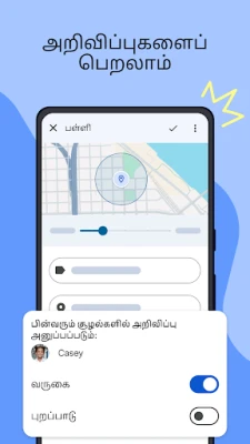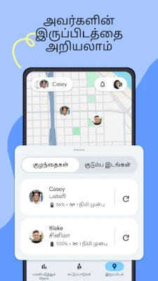 உங்கள் குழந்தைகள் எங்கே இருக்கிறார்கள் என்பதை அறிந்துகொள்வது பெற்றோர்களுக்கு மன அமைதியைத் தரும். Family Link மூலம், அவர்களின் சாதனம் எங்கிருந்தாலும், வரைபடத்தில் அவர்களின் நடமாட்டத்தைக் கண்காணிக்க முடியும். குறிப்பிட்ட இடங்களுக்கு அவர்கள் வரும்போதும் புறப்படும்போதும் உடனடி அறிவிப்புகளைப் பெறுங்கள். சாதனத்தின் பேட்டரி நிலை என்ன என்பதை அறியவும், தேவைப்படும்போது அவர்களின் சாதனத்தை ஒலிக்கச் செய்யவும் Family Link உதவுகிறது. டிஜிட்டல் உலகில் உங்கள் குடும்பத்திற்குப் பாதுகாப்பு மற்றும் தெளிவை வழங்க Family Link ஒரு நம்பகமான கூட்டாளியாக நிற்கிறது.