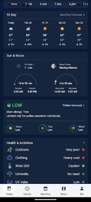 ஆழ்ந்த விவரங்களுடன் வானிலையைப் புரிந்து கொள்ளுங்கள். அன்றாட வானிலை நிலைமைகள், ஒவ்வொரு மணிநேர முன்னறிவிப்புகள், மற்றும் கடந்தகால சராசரிகள் போன்ற துல்லியமான தகவல்களை எளிதாக அணுகலாம். காற்றின் வேகம், பார்வைத் திறன், ஈரப்பதம், வளிமண்டல அழுத்தம், பனிப்பொழிவு புள்ளி மற்றும் மழைக்கான வாய்ப்புகள் போன்ற நுணுக்கமான தரவுகளை நீங்கள் ஆராயலாம். சூரிய உதயம், அஸ்தமனம், சந்திரனின் கட்டங்கள், மற்றும் புற ஊதா கதிர் குறியீடு போன்ற விவரங்களும் உங்கள் விரல் நுனியில். மேலும், வெப்பநிலைப் பரப்பு, ராடார் கண்காணிப்பு, மழைப்பொழிவு, மேகங்கள் மற்றும் செயற்கைக்கோள் படங்களைக் கொண்ட ஊடாடும் வரைபடங்கள் மூலம் வானிலையை ஒரு புதிய கோணத்தில் கண்டறியலாம்.